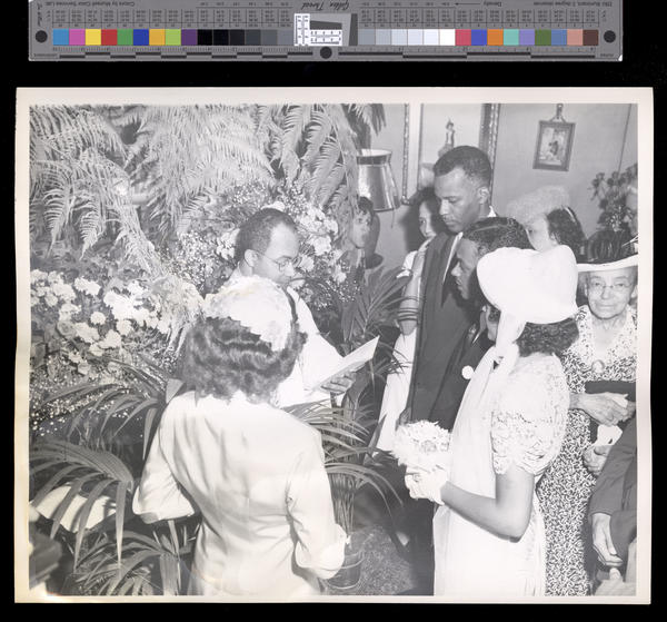 P.2022.16.30: "Betty Hinkson, maid of honor, Rev. Robert Harris, Georgine Upshur, William Willis, Raymond Brownlow Willis, "Aunt Pink," Aunt of "Aunt" Hazel Ramsey, dear family friend "