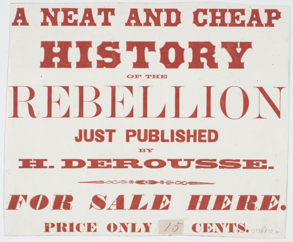 A Neat and cheap history of the Rebellion just published by H. Derousse. For sale here. Price only 20 cents.