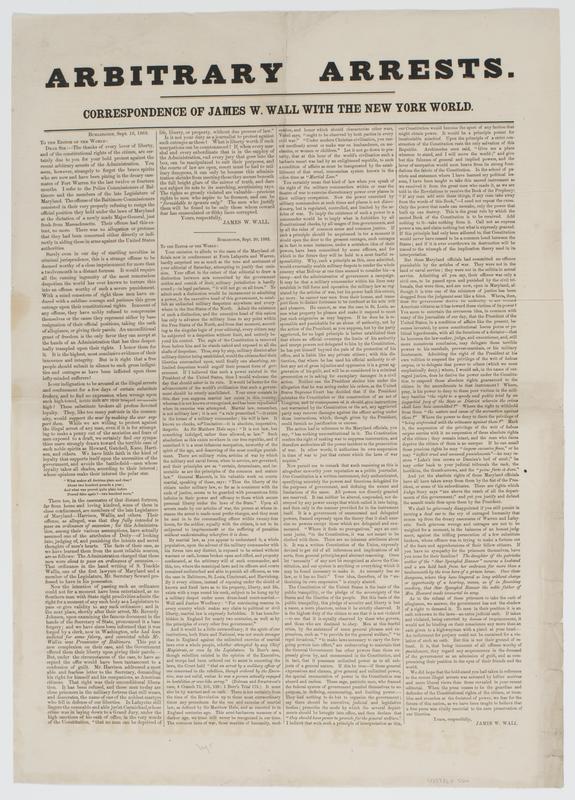 Arbitrary arrests. : Correspondence of James W. Wall with the New York World.
