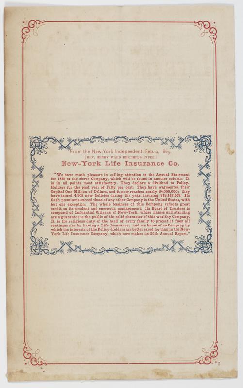 Purely mutual life insurance. New-York Life Insurance Co. : Established 1845. Home office, 112 & 114 Broadway, N.Y. ... This