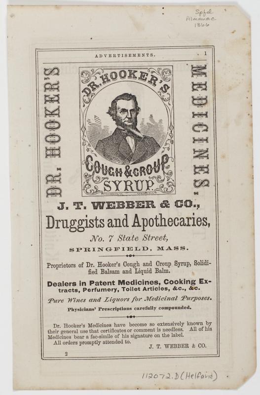 Dr. Hooker's medicines. : J.T. Webber & Co., druggists and apothecaries, No. 7 State Street, Springfield, Mass. Proprietors