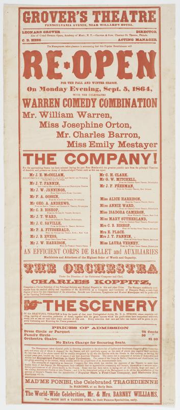 of Music, N.Y.--Grover & Sinn, Chestnut St. Theatre, Philada. C.D. Hess acting manager The management takes pleasure in announcing