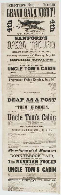 Temperance Hall, Trenton Grand gala night! in commemoration of the glorious 4th 4th of July 1776. : Sanford's Opera Troupe!