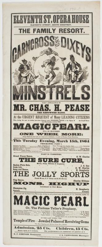 Eleventh St. Opera House : Eleventh Street, above Chestnut. The family resort. Carncross and Dixeys Minstrels ... Tuesday evening, March 15th, 1864 ... / R.F. Simpson, treasurer. J.L. Carncross, manager.