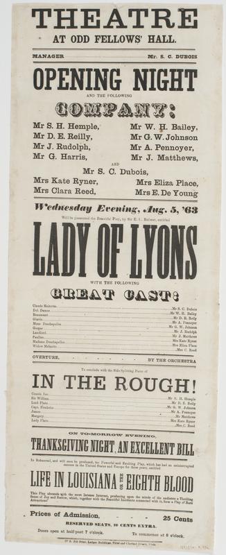 Theatre at Odd Fellows' Hall. : Manager Mr. S.C. Dubois Opening night and the following company: ... Wednesday evening, Aug.