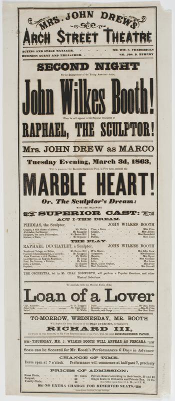 of Raphael, the sculptor! Mrs. John Drew as Marco Tuesday evening, March 3d, 1863, will be presented the beautiful romantic