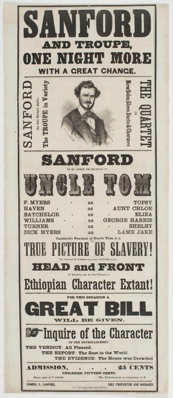 new solos, glees, duets & choruses Sanford in his great delineation of Uncle Tom ... Sanford's version of Uncle Tom is a true