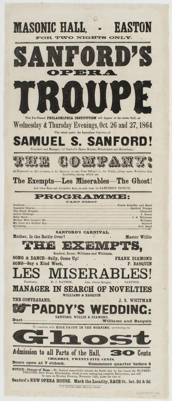 Masonic Hall, Easton for two nights only. Sanford's Opera Troupe : This far-famed Philadelphia institution will appear at