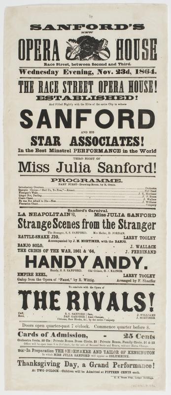 minstrel performance in the world Third night of Miss Julia Sanford! Programme. ... Strange scenes from the stranger ... Handy