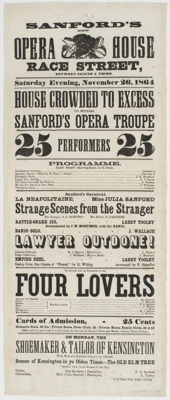 Sanford's new Opera House Race Street, between Second & Third. : Saturday evening, November 26, 1864 House crowded to excess