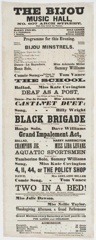 The Bijou Music Hall, No. 607 Arch Street, next door below the theatre. : Harry Enochs, sole lessee P.A. Fitzgerald, stage