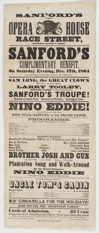 tight rope. Miss Julia Sanford in her grand dance. Programme. ... Sanford's dramatic effect of "Villikins and his Dinah!"