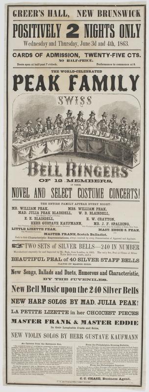 Greer's Hall, New Brunswick Positively 2 nights only : Wednesday and Thursday, June 3d and 4th, 1863. Cards of admission,