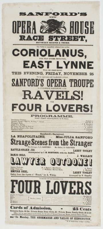 Sanford's new Opera House Race Street, between Second & Third. : The public is respectfully informed that neither Coriolanus,