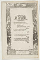 - Long life to McClellan! he will soon put down Rebellion (4 vs. and chor.) Air: Happy Land of Canaan. By P.J.C., Variant: a. Publ. De Marsan (3). De Marsan ship border, with war scenes in lower corners. 25.6 x 16.8 cm., Variant: b. [Publ.] De Marsan (3). De Marsan ship border. 25 x 16 cm., Variant: c. [Without author's initials;] with period and dash after Air; sheet no. 951; publ. Wrigley (1). Wrigley kissing cupids border. 24.5 x 15 cm.