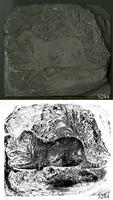 - Block numbered in two places: 4982., Image of an otter [?] in a natural setting., "Spel. Book. Ichne…" -- Inscribed on side of block., “N.J. Wemmer. 5 Pear St. Phila.”—Back of block. Nelson J. Wemmer is listed (as an artist) at this address in Philadelphia city directories from 1848 to 1856.