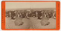 Series of titled views depict Ocean Grove, New Jersey. One image depicts a crowd of men, women and children standing and sitting