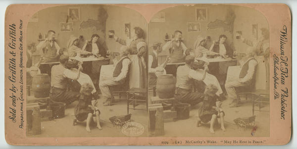 Series of titled satirical, anti-Irish genre scenes include, "A bully good fellow was he," "May he rest in peace," "The free