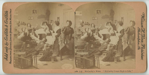 a wake where the alcohol is flowing. As the adults continue to drink a fight breaks out, then proceeds to McCarthy's resurrection.