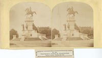 Views showing the equestrian statue sculpted by Thomas Crawford erected in the western portion of the square in 1858. Shows