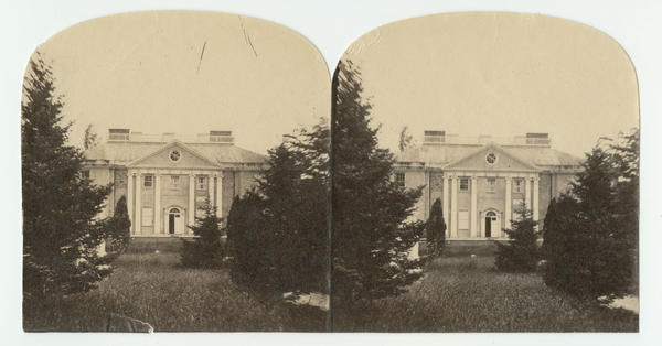 Shows the mansion built for botanist William Hamilton in the 1780s on the West Philadelphia estate converted to a cemetery