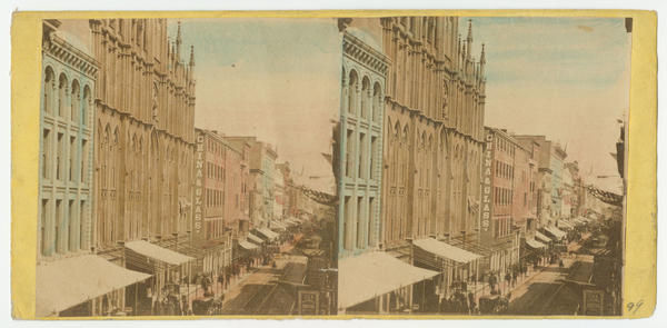 Chestnut); and a cafe. Also includes a view of signs advertising Willis P. Hazard, bookseller and publisher (724 Chestnut)