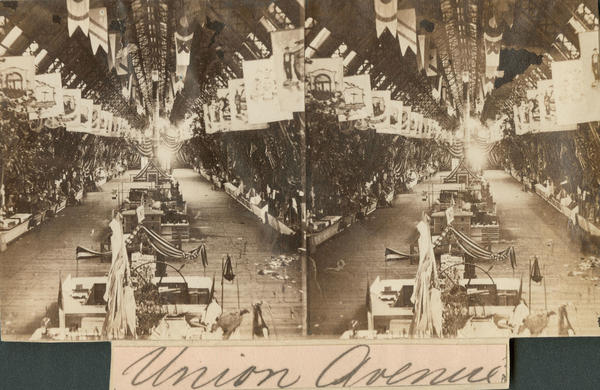 the soldier relief organization, the U.S. Sanitary Commission. Shows Union Avenue, the main thoroughfare; the Horticultural