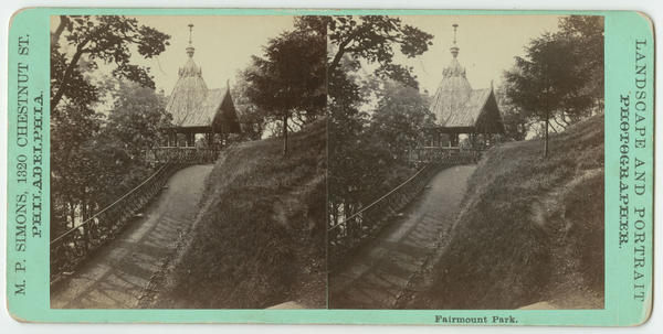 [Rustic pavilion on Reservoir Hill at Fairmount Water Works, Philadelphia] [graphic] / M.P. Simons, 1320 Chestnut St., Philadelphia. Landscape and portrait photographer.