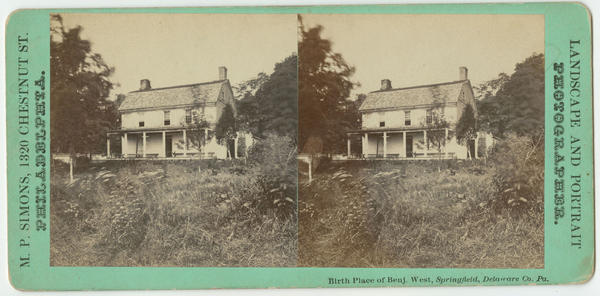 Birth place of Benj. West, Springfield, Delaware Co. Pa. [graphic] / M.P. Simons, 1320 Chestnut St., Philadelphia. Landscape and portrait photographer.