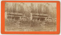 stand in front of the hotel. The creek is visible in the foreground. The hotel was razed in 1872.