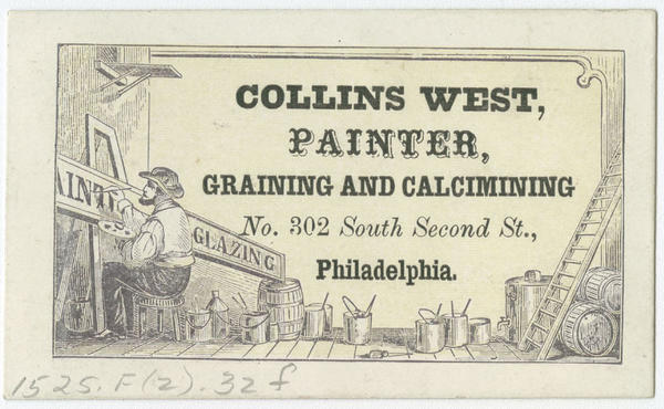 Collins West, painter, graining and calcimining, No. 302 South Second St., Philadelphia. [graphic].