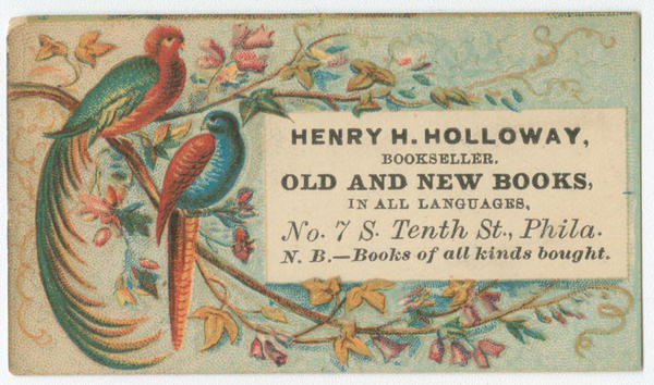 Henry H. Holloway, bookseller, old and new books, in all languages, No. 7 S. Tenth St., Phila. [graphic] : N. B.--Books of all kinds bought.
