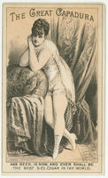 Advertising text printed on verso: The three champions! Capadura half dime, capadura de la reina, capadura olivette. Dealers only supplied by R.C. Brown & Co. New York. Branch, 601 and 603 Market St. Philadelphia.