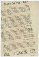 Advertising text printed on verso promotes the sale of Wm. T. Hopkins' hoop skirts, bustles, and corsets from his 133 North Eighth Street establishment in Philadelphia.