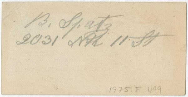 Manuscript note on verso: B. Spatz, 2031 North 11th.