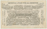 Advertising text printed on verso in ornate text: Centennial award over all cometitors. Maison de patrons, haute nouveaute,