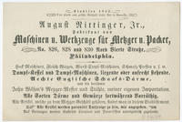 August Nittinger, Jr., manufacturer of butchers' & packers' machinery and tools, nos. 826, 828 & 830 North Fourth Street, Philadelphia.