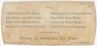 List of available tubes, pipes, radiators, gauges, tools and supplies printed in two columns on verso.