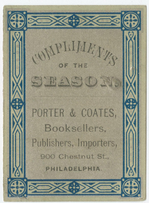 Compliments of the season. Porter & Coates, booksellers, publishers, importers, 900 Chestnut St., Philadelphia.