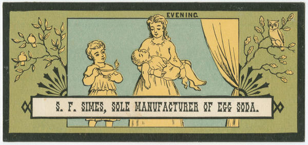Advertising text printed on versos promotes Simes' apothecary at the northwest corner of Twentieth and Spruce Streets in Philadelphia and some of his products, including Cryoline (a silver polish), egg soda, and ginger ale.
