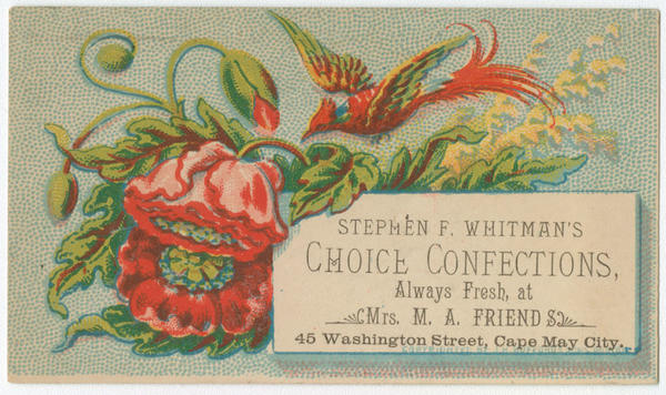 Stephen F. Whitman's choice confections, always fresh, at Mrs. M.A. Friend's, 45 Washington Street, Cape May City. [graphic].