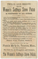 Twelve good reasons why the Woman's Suffrage Stove Polish is preferred to all others.