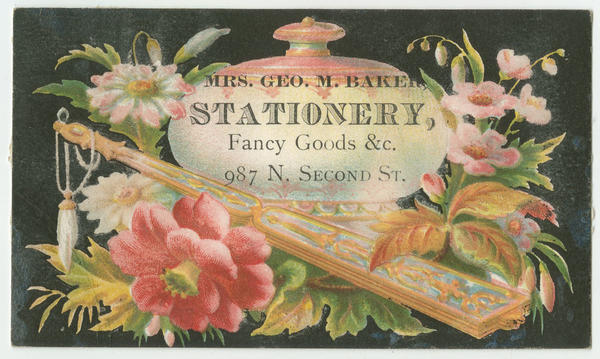Mrs. Geo. M. Baker, stationery, fancy goods, &c. 987 N. Second St. [graphic].