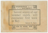 Advertising text printed on verso: Brighton Laundry, second season of our summer starch, will commence first week in May. Lewis G. Carr. 158 N. 6th St., Philadelphia.