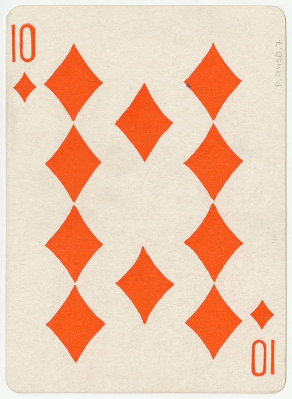 Playing card designs printed on versos. |