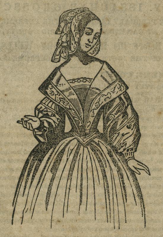 Three-quarter length portrait of the young woman, wearing a bonnet. |