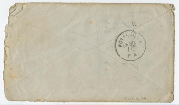 Faint pencil annotations and ink-stamped postmark: Pottsville, PA, Aug 10 on verso. |