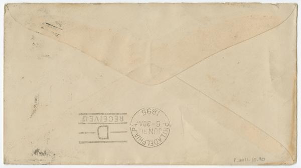Ink-stamp postmark on verso: Recevied Philadelphia June 30, 1895 6 30 A[M]. |