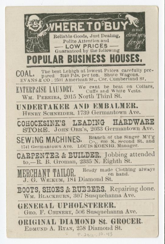Library Company of Philadelphia| Print Department| Helen Beitler Graphic Ephemera Collection - Trade cards & Blotters [P.2011.10.43] |