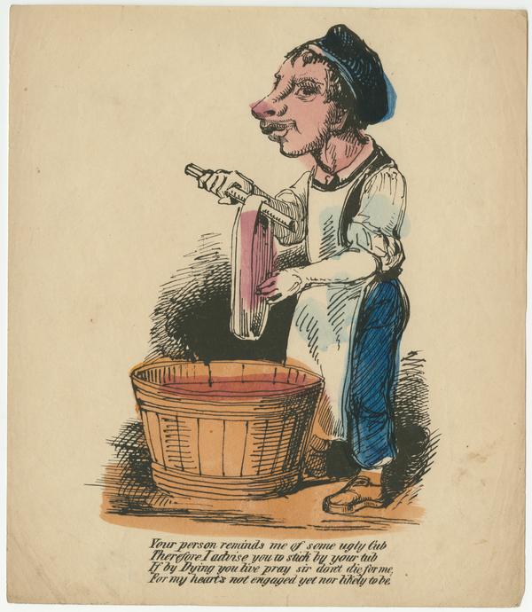 Text: Your person reminds me of some ugly Cub / Therefore I advise you to stick to your tub/ If by Dying you live pray sir don’t die for me, / For my heart’s not engaged yet nor likely to be.